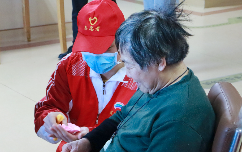 志愿者们走进烟台芝罘岛老年颐养中心,以“敬老、爱老、助老”为活动目标,各显其能、各尽其责,陪老人们捏彩泥、唠家常,表演的唱歌、快板等节目,受到护工、老人们的一致好评。一首《智取威虎山》,带动了老人们的心绪,使老人们回想起年轻的时光;快板《玲珑塔》节奏轻快,互动环节益智动脑,让老人们开怀大笑,连连叫好。