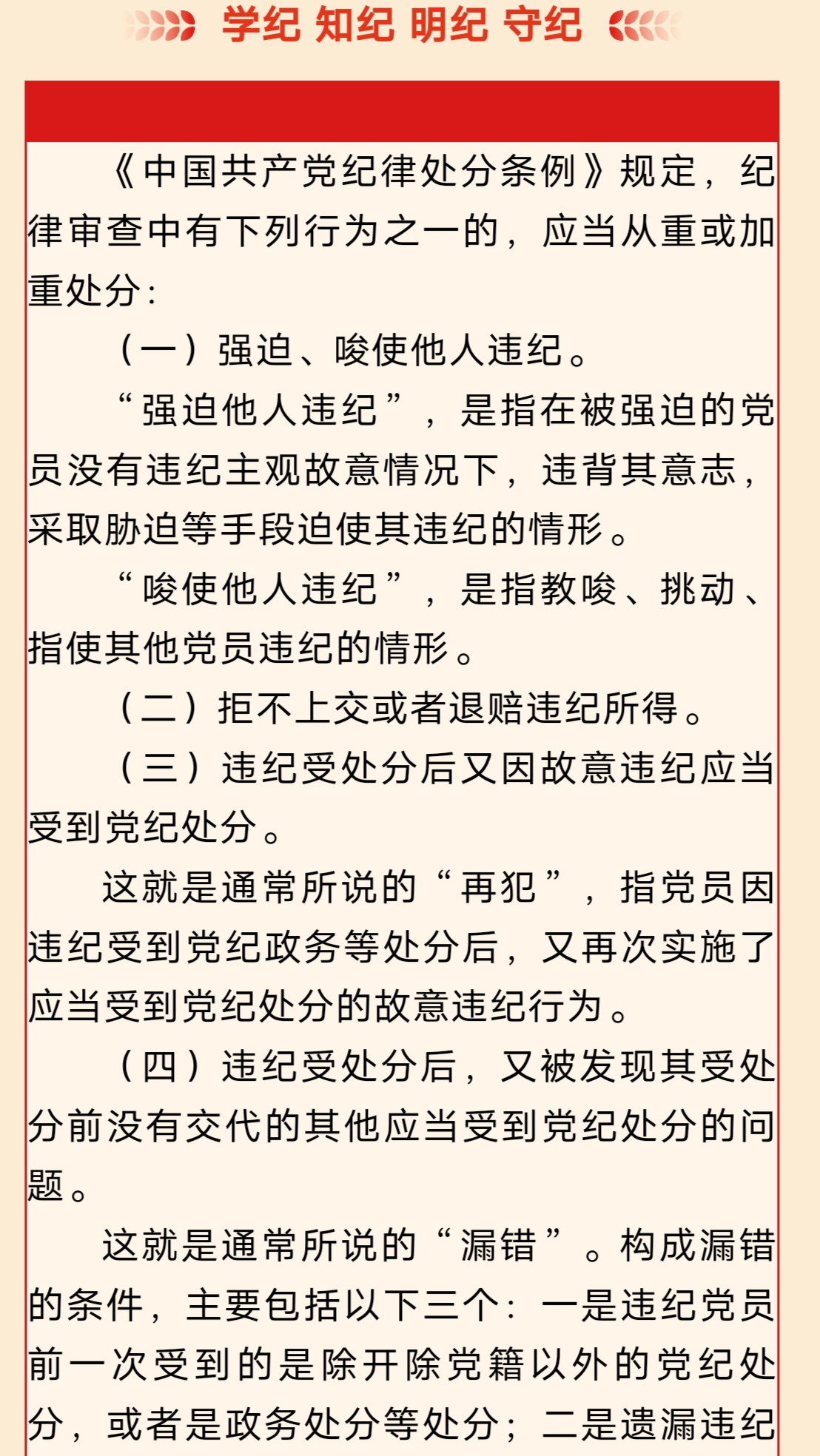 【党纪学习教育】学习专栏•每日一课—— 第八期 哪些情形应当从重或者加重处分