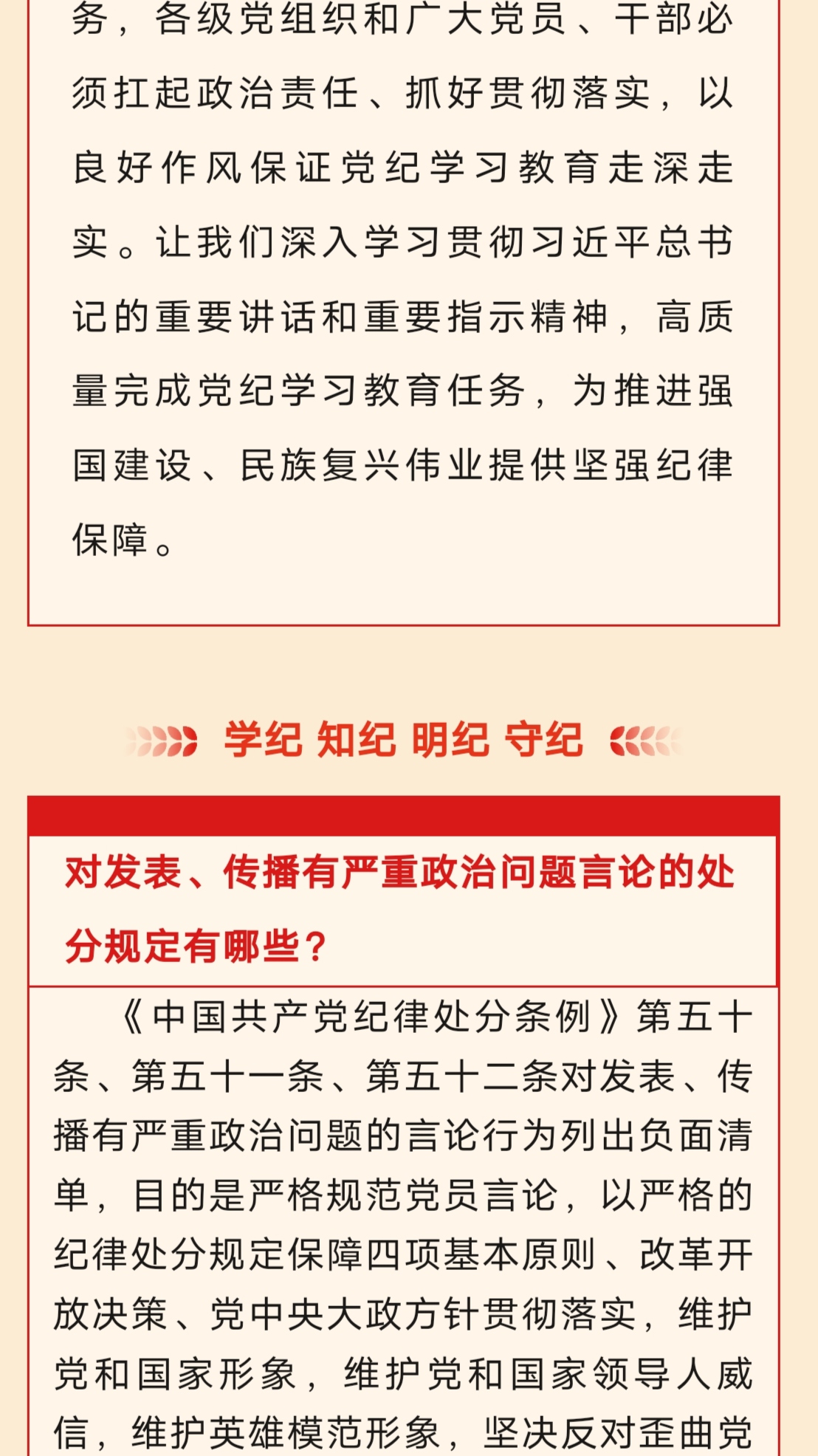 【党纪学习教育】学习专栏•每日一课—— 第十四期 对发表、传播有严重政治问题言论的处分规定有哪些?