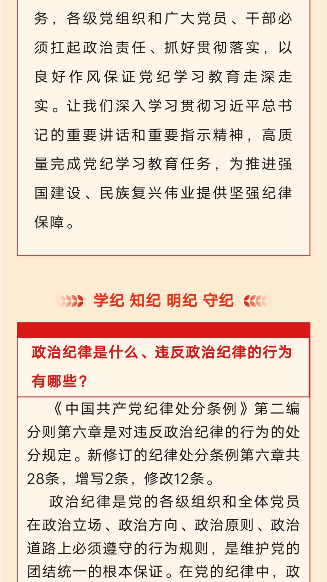 【党纪学习教育】学习专栏•每日一课—— 第十三期 政治纪律是什么、违反政治纪律的行为有哪些?