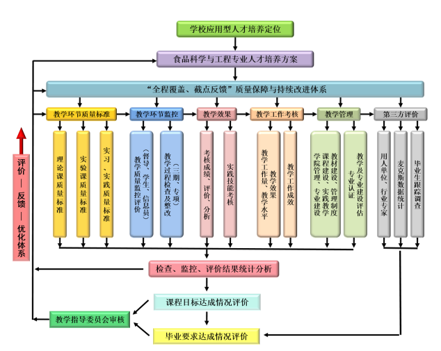 2023年食品科学与工程本科专业顺利通过国家工程教育专业认证。遵循工程教育认证OBE理念,围绕人才培养目标要求,专业建立并不断完善“全程覆盖、截点反馈”的多层系统的闭环式教学质量保障体系。建立了面向产出的课程目标和毕业要求达成情况评价机制,并实现了持续改进。通过上述机制的实施和不断优化,确保了学生毕业能力的达成,人才培养质量逐年攀升。