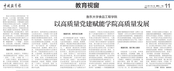 《中国教育报》介绍我院党建工作经验:以高质量党建赋能学院高质量发展