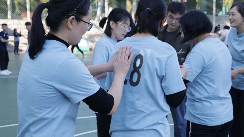 裁判员一声哨响,一场热情似火的篮球赛就此展开。场上参赛队员积极跑位,交替进攻与防守;场下同学热情加油、不停呐喊,现场气氛高昂,教职工老师情绪高涨,拼抢积极,奋勇当先,将个人特长与团队协作充分发挥,场面精彩纷呈,赢得现场观众师生的阵阵喝彩。