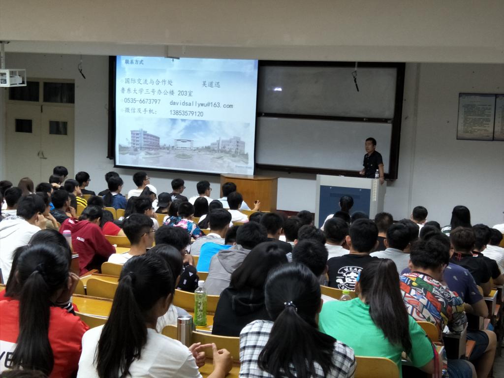 吴道迅老师从学校出国留学平台建设、出国留学的意义、各国留学概况和费用、出国留学要做哪些准备、学校有关留学服务保障措施等五大发面,向学生风趣形象地介绍了学校国际化基本情况,并详细回答了学生关于如何选择出国留学高校、出国留学对就业的作用、学校有哪些免学费交换项目、如何参加短期实习见习或游学项目、如何进行申请和办理签证等问题,互动环节反响热烈。学生学习热情饱满,讲座期间掌声不断。