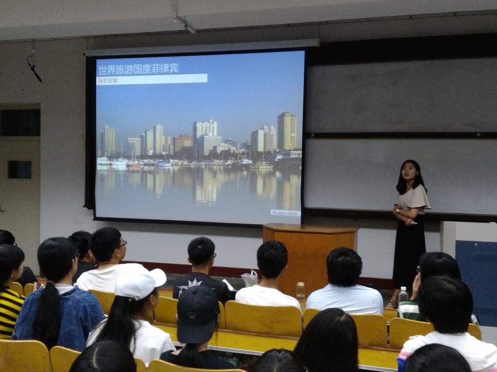 随后,学校友好合作学校菲律宾德拉萨大学(亚洲排名72位)驻中国办公室代表姚茜老师为学生做了精彩生动的“菲律宾留学生活与风情文化”专题讲座,让学生们对菲律宾高等教育和当地风俗有了基本的了解,对留学生活有了更多的憧憬。华兹华斯国际教育学校郭磊老师简要向学生们介绍了雅思和托福考试的基本情况,鼓励学生们从大一开始努力学好外语,为创造自己多彩人生添加砝码,开启一扇通往世界的窗户。