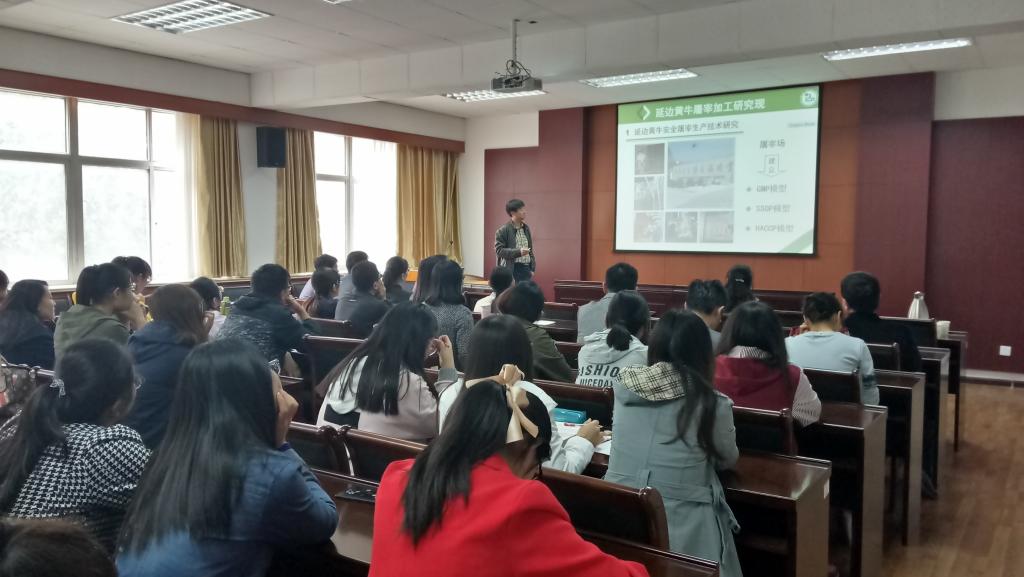 上午10:00,报告会正式开始。首先,梁成云教授讲述应如何辨别肉质好的延边黄牛。然后,详细介绍烤肉类型。最后,梁成云教授对延边大学农学院的设置做了简单描述,其农学院对外交流频繁,每年七八月份会向朝鲜,韩国,俄罗斯等国家进行交流。并表明希望我们学院的学生可以报考他们学校研究生的意愿。