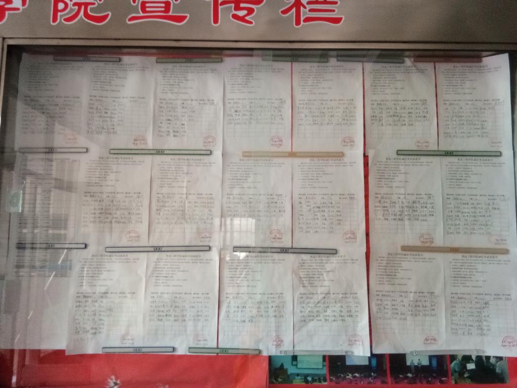 为营造良好的考试氛围,开考前,学院“严肃考风考纪,树立良好学风”横幅悬挂于北六教学楼显眼位置,各班相继签订的诚信考试承诺书张贴于北六大厅宣传栏内。