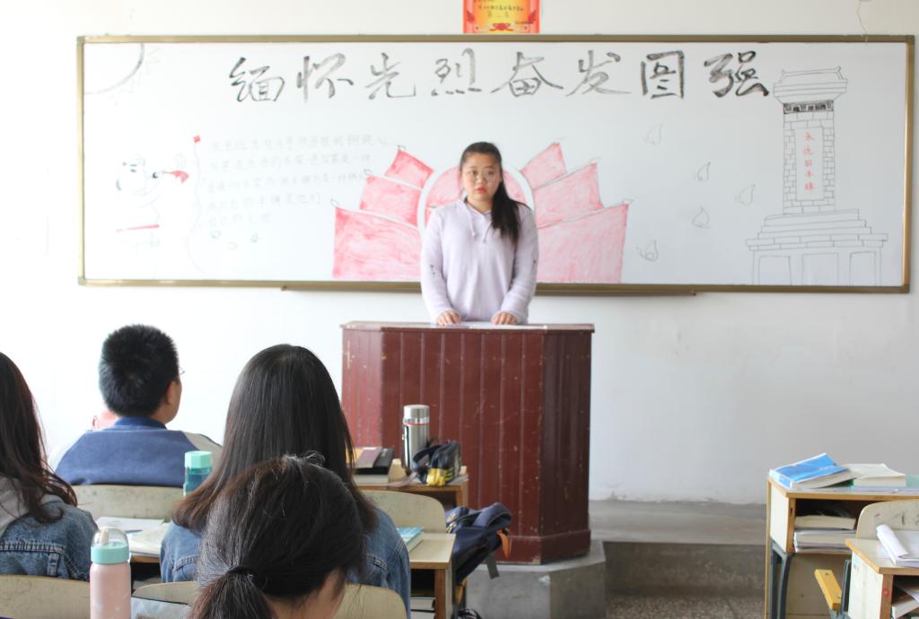 活动伊始,同学们一起观看了《人民英雄永垂不朽》《长征》等纪录片,胸怀真理从容赴死的瞿秋白、弹尽粮绝血战到底的杨靖宇等英雄楷模的光辉事迹,让同学们体会到了中华民族“自强不息,艰苦奋斗”的传统美德和先烈们大无畏的革命精神。随后,学生代表上台发言,表达自己对革命先烈的缅怀之情。