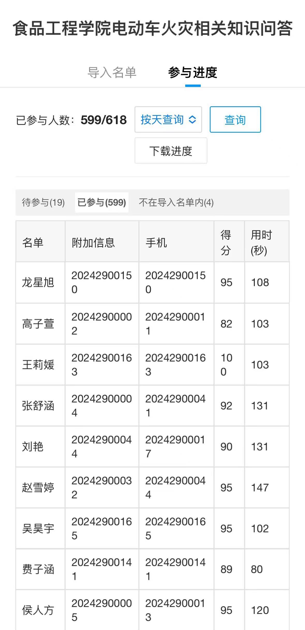 学院通过线上线下两种形式开展电动车安全知识竞赛。线上竞赛通过网络平台进行便捷答题,同学们积极参加并取得优异的成绩。线下竞赛过程中,同学们沉着应对,展现出了扎实的安全知识储备。竞赛以赛促学深化认知,既激发学习热情,也巩固了前期宣传教育的成果,让同学们加深了对安全知识的理解和记忆。