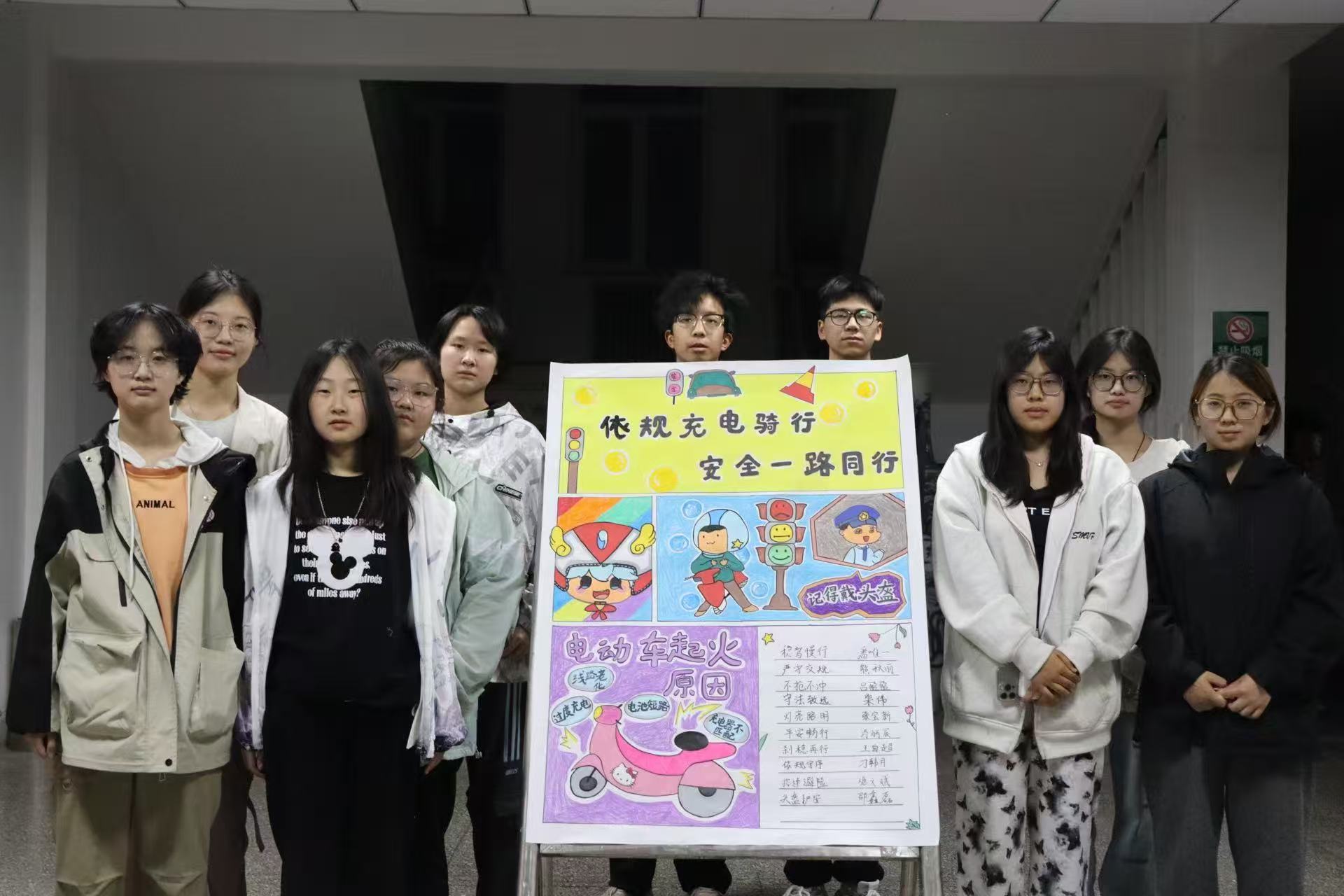 学院组织同学们签署电动车安全倡议书。呼吁大家自觉遵守交通法规,文明骑行电动车;不在校园内违规停放、充电,共同维护校园安全秩序。同学们承诺将严格遵守电动车安全规定,从自身做起,为创建平安校园贡献力量。