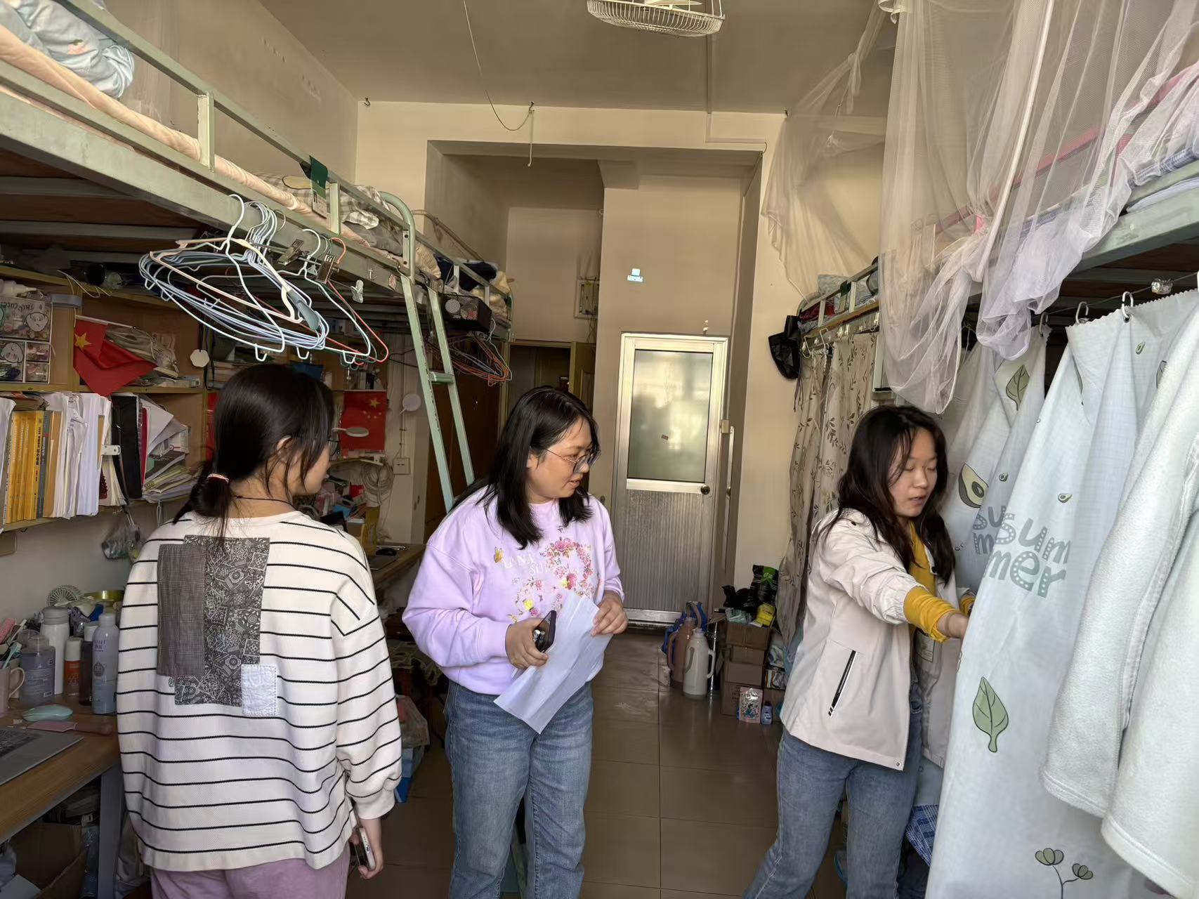辅导员深入学生公寓开展安全检查。重点检查违规停放电动车、私拉电线充电等危险行为,并向同学们讲解电动车安全充电知识。本次检查有效排查了学生公寓内的电动车安全隐患,为学生营造了安全的住宿环境。