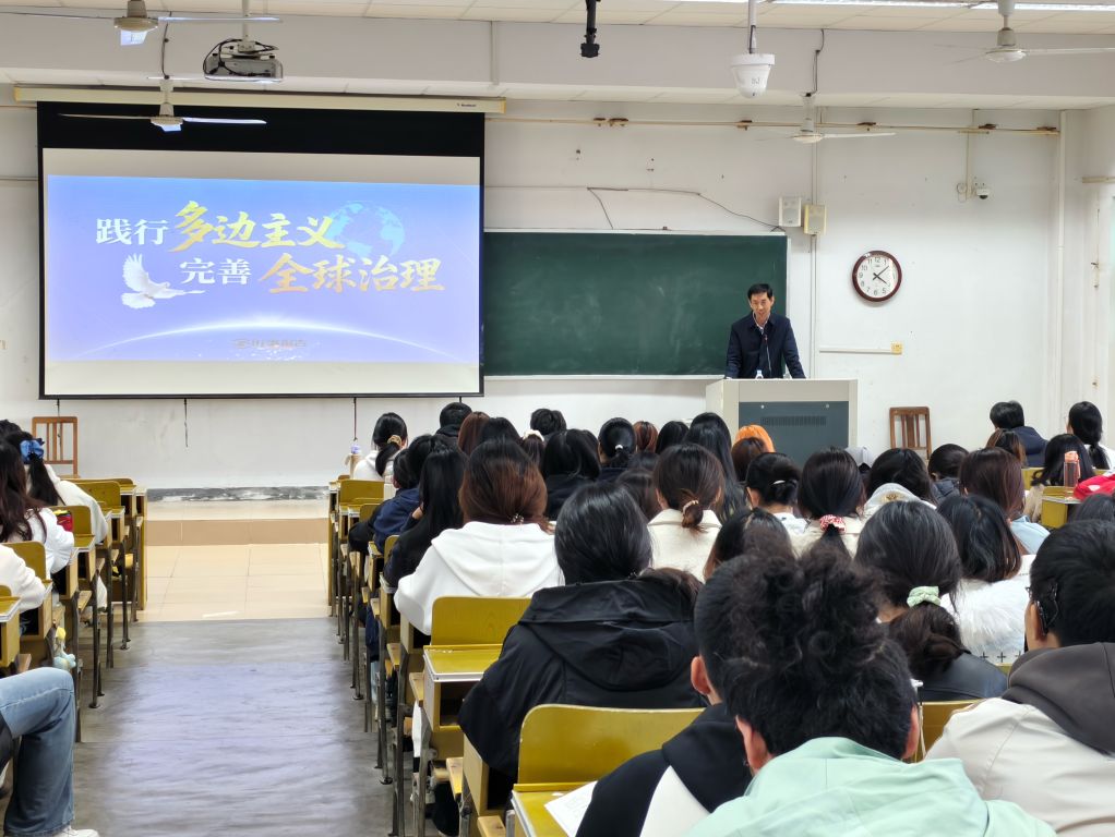 食科本2401班于明鑫说:“这堂课让我读懂了‘东升西降’的大势,今后我会把专业学习和国家需求结合,在食品领域练硬本领。”食科本2402班杨雨桐表示:“王部长的讲解打开了我的国际视野,我将以更主动的姿态关注时事,让青春目标紧跟时代步伐。”