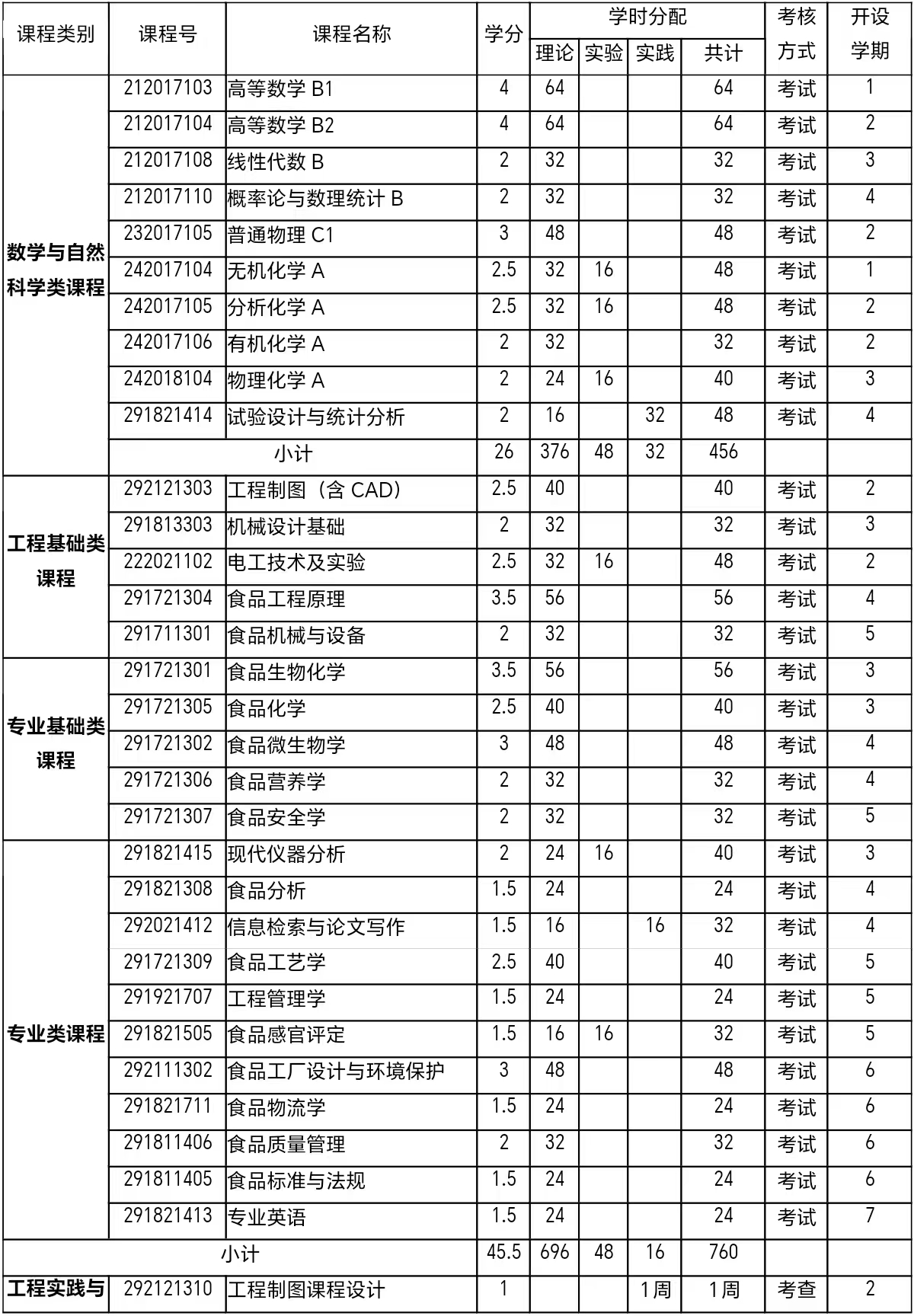 专业大类:食品科学与工程类 授予学位:工学学士