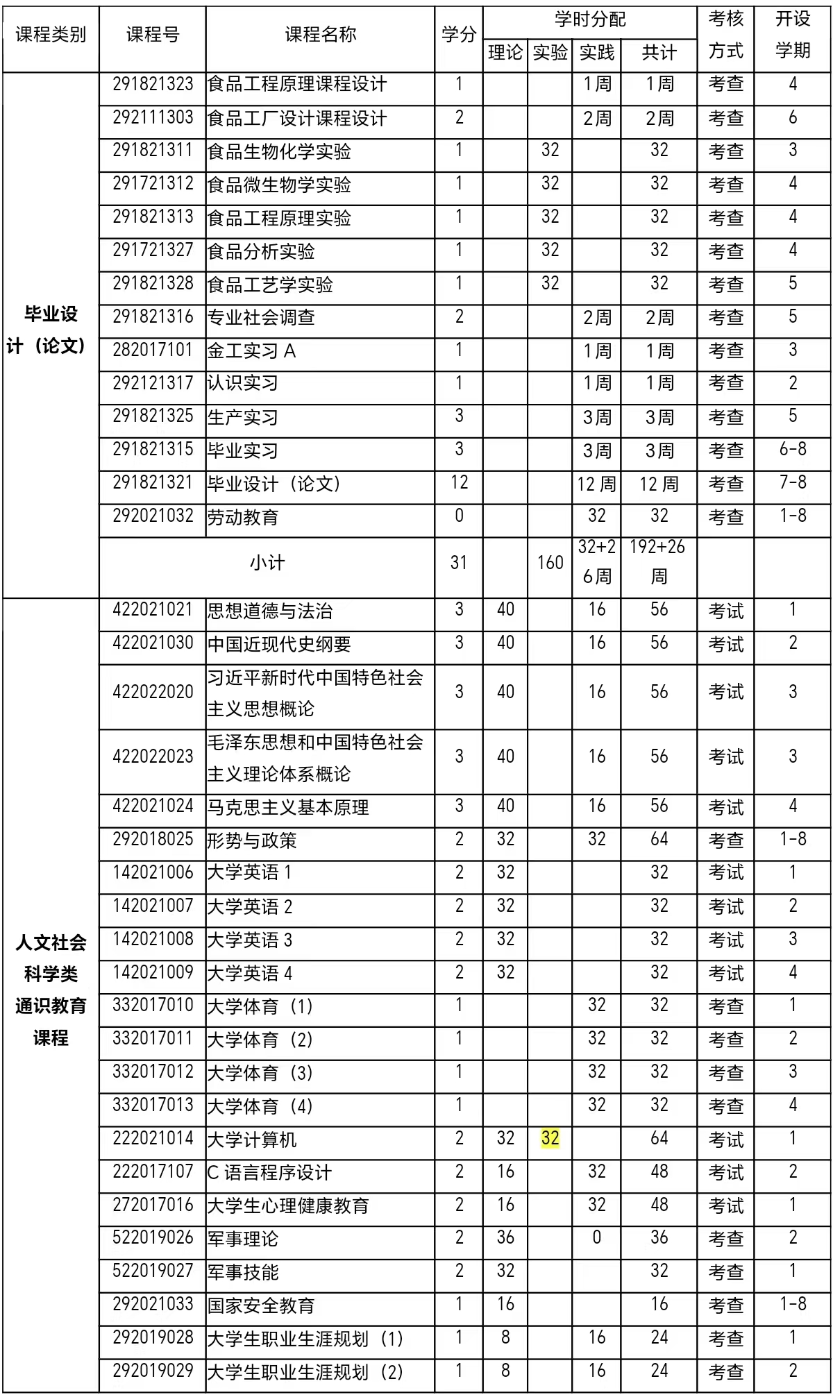 2021级食品科学与工程专业本科人才培养方案
