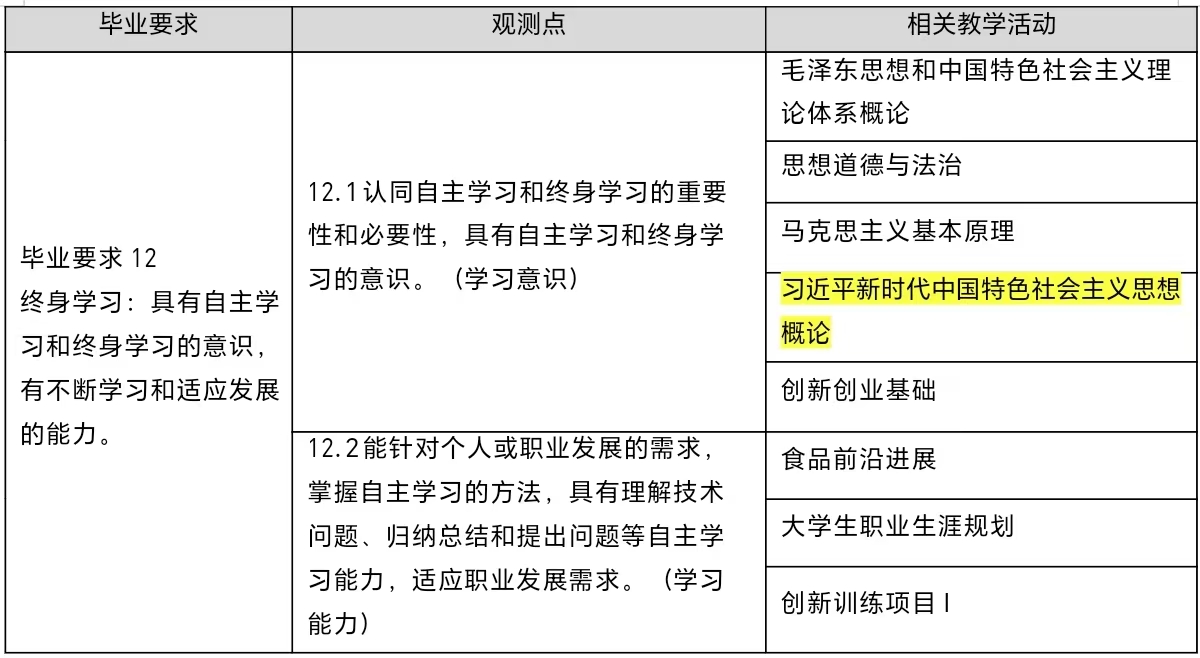 12. 终身学习:具有自主学习和终身学习的意识,有不断学习和适应发展的能力。