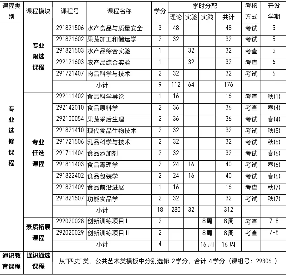 食品科学与工程专业本科人才培养方案