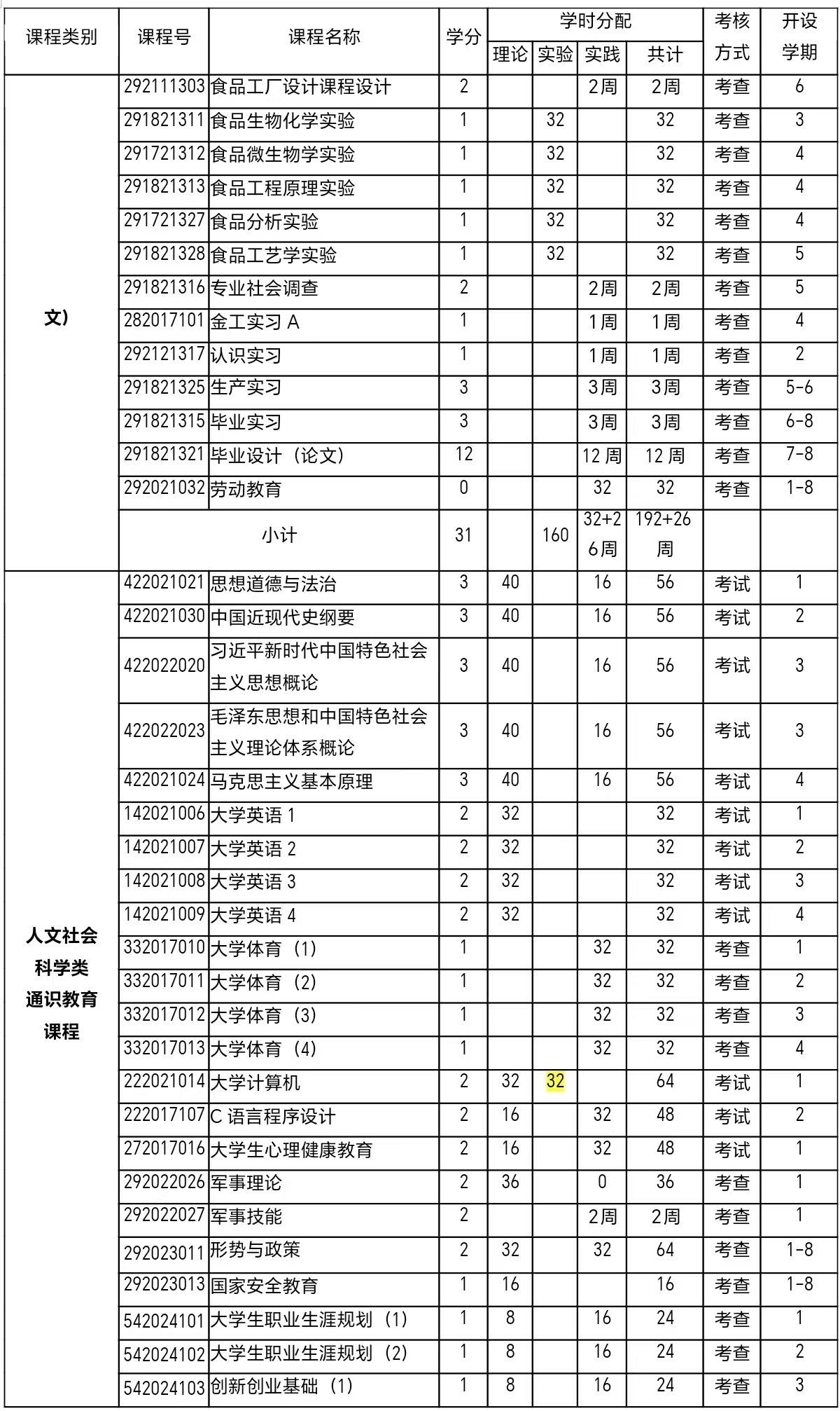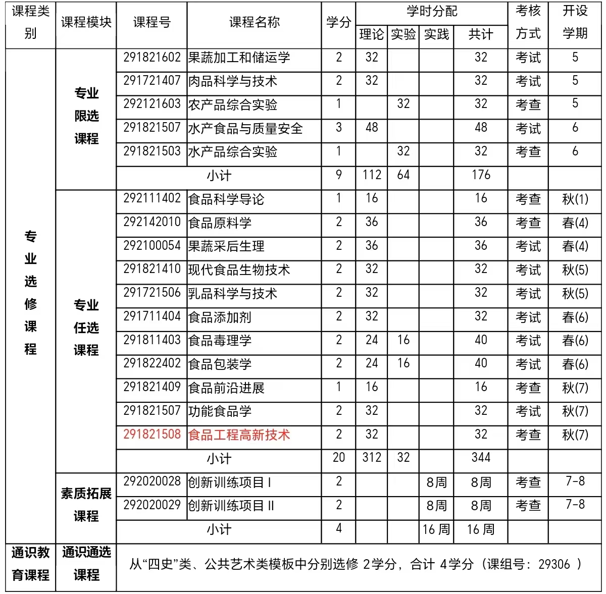 食品科学与工程专业本科人才培养方案