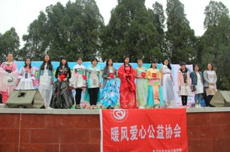 4月2日,由我院暖风爱心公益协会、烟台大学和山东工商学院共同组织的“环保创意服装秀”决赛在南山公园举行。我院黄旭等人的作品“和”荣获一等奖。作品主要由废旧的条幅制作而成,迎合了我们环保创意的主题,整体的红色显得端庄大气、独具匠心,且外形古朴典雅,袖子的书法更彰显了设计者的文化功底,红与黑的搭配引爆全场。