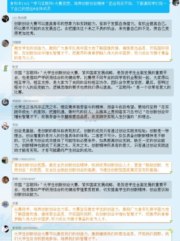 各团支部通过观看视频等方式,一同回顾了总书记的回信内容,了解了“互联网+”大学生创新创业大赛“青年红色筑梦之旅”的参赛意义。负责科创工作的辅导员老师组织大家学习了第六届山东省“互联网+”大学生创新创业大赛相关赛事参赛指南,为同学们详细解读了“互联网+”专业设置的背景及“互联网+”人才培养目标,希望同学们可以充分利用“互联网+”的平台把基础理论和相关知识学得深而广,注重理论与实际的结合,认真分析影响人生发展的各种因素,做好人生规划。同学们结合当下学业情况及未来职业生涯发展,对“互联网+”展开交流讨论,纷纷表示总书记的回信为自己指明了前进的方向,会积极投身创新创业实践,争做有理想、有追求、有担当的大学生。(撰稿:王大成 陈亚男 审核:李卫东)