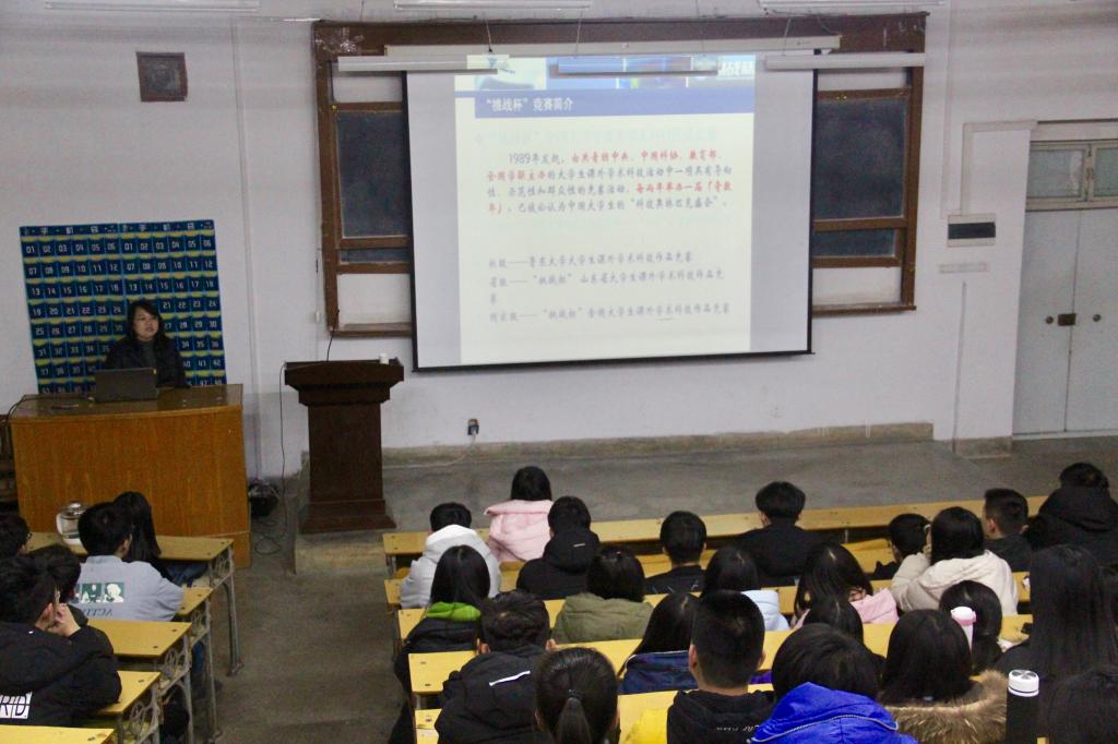 会议伊始,赵老师介绍了举行此次宣讲会的重要性及意义,她指出了往届同学们在科技创新、动手实践较好的方面和存在的不足,专门就“挑战杯”、山东省大学生科技创新大赛等赛事背景、参赛条件、参赛要求等内容进行了重点讲解。赵老师以自身经历讲述了参赛中的注意事项,重点环节,鼓励同学们积极参加“挑战杯”、“互联网+”创业等各种创新创业大赛,不断提高自己的创新意识与动手能力。