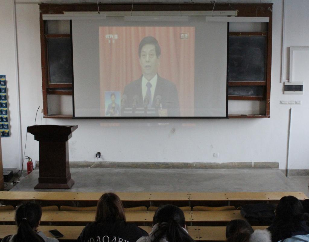 3月8日下午,英国上市公司365在北区六号教学楼106室组织新疆籍学生观看全国“两会”视频。学院辅导员侯明佳和新疆籍学生到场学习。