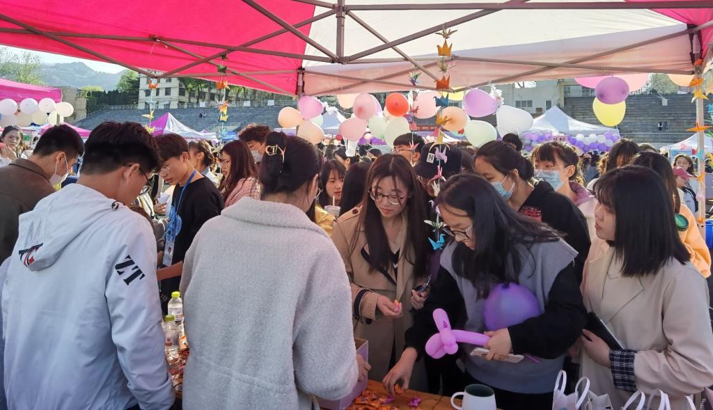 活动开幕式分为才艺表演、趣味游戏、小小心愿墙等三个环节。我院学生会成员提前到场布置,用气球、千纸鹤装饰帐篷。同学们热情高涨,积极参演节目,点燃全场气氛。我院准备了一站到底、丘比特之箭、蒙眼转圈等游戏环节,吸引众多学生前来参与。同学们通过有趣的互动游戏,纷纷获得了心仪的节日小礼品。