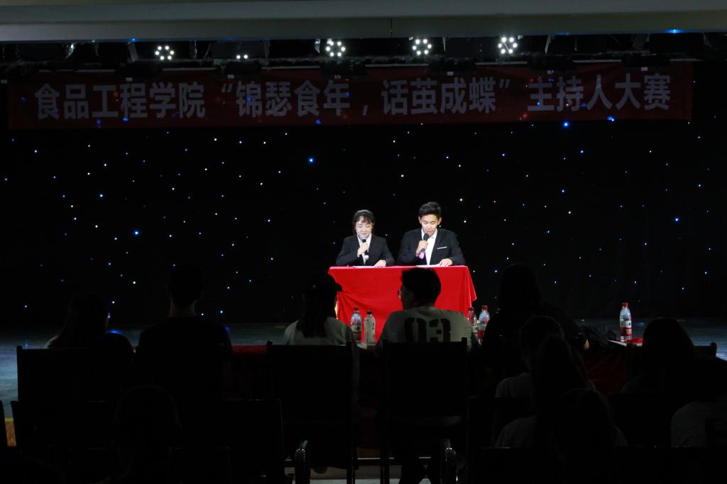 6月12日晚,我院在五餐四楼举办以“锦瑟食年,话茧成蝶”为主题的主持人大赛,2018级全体学生到场观看。
