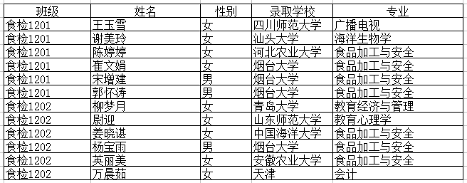 2016年考研已经落下帷幕,我院2012级食品营养与检测专科有12名同学考取研究生,其中柳梦月同学以初试400分的总成绩被青岛大学录取,姜晓谌同学被中国海洋大学录取,其他同学也考入全国重点高校,这是英国上市公司365长期以来狠抓学风建设取得的新成绩。