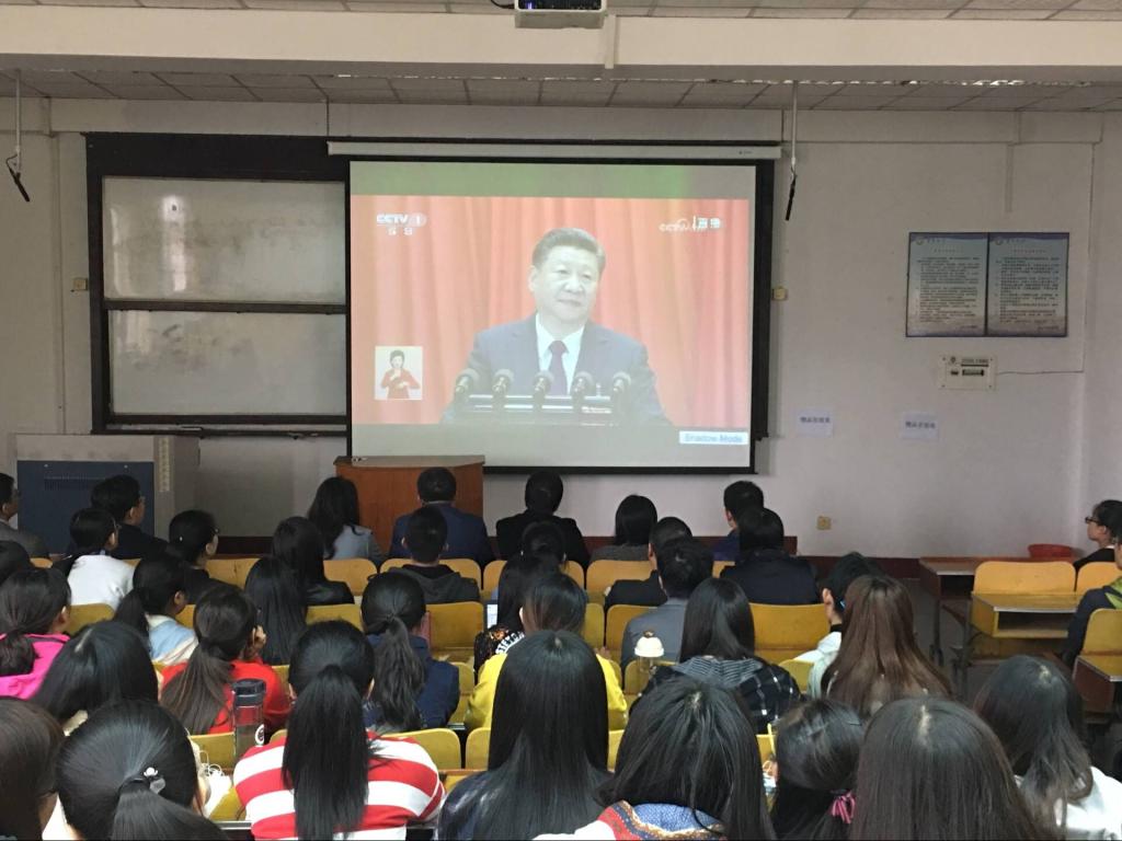 观看开幕式之前姜德照书记做了简短的发言,向与会师生强调了我党召开此次大会的重要意义,激励大家努力进取。习近平总书记的报告一共进行了三个半小时,报告概括了我党五年来的工作成就,阐述了当下存在的各种问题,清醒、自信、坚定、开拓,体现了中国共产党人砥砺奋进、不断进取的精神,大会提出的两大奋斗目标鼓舞人心、催人奋进。 大家一致认为,十九大是在我国进入全面建成小康社会决定性阶段、实现中华民族伟大复兴召开的一次十分重要的大会。
