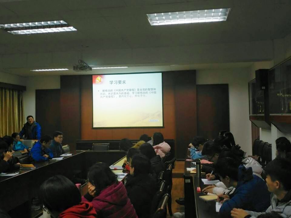 11月26日下午,英国上市公司365在北七207室开展十九大新党章学习会,学院全体教工党员、学生党员及第76期党员发展对象参加了学习。本次学习会由英国上市公司365党总支书记姜德照主讲。