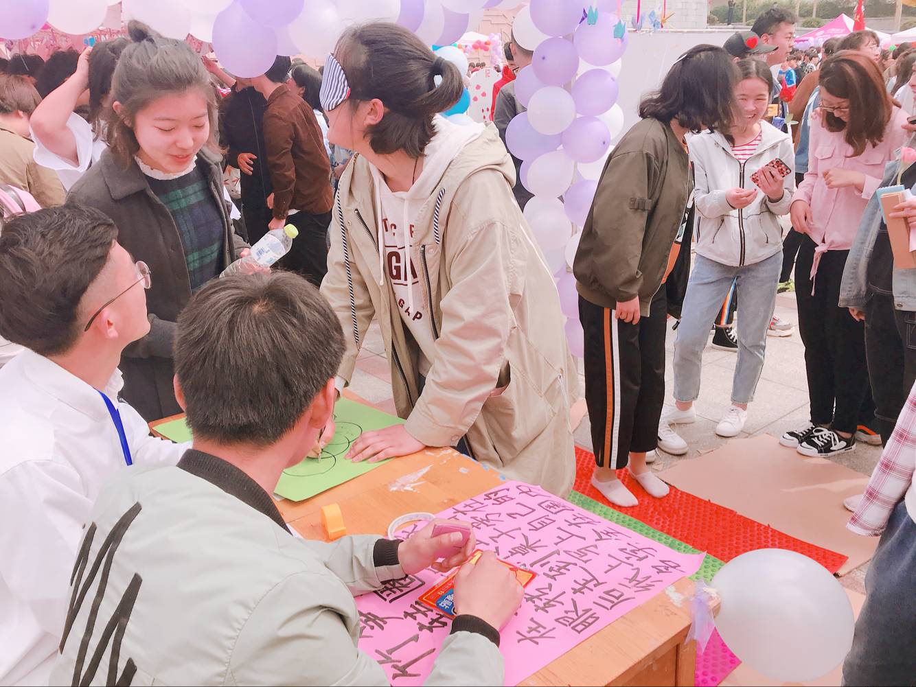 我院学生会女生部提前一个月为本次女生节做准备,精心拍摄主题微电影、面向全院女生征集心愿纸鹤、筹备精美礼品和节日当天所需道具,新闻部进行女生节线上线下的宣传工作。女生节当日上午八点,一切准备就绪,整个文化广场一片斑斓,丘比特之箭、女神都爱玩、心领神会、小竹笋上转圈圈四个游戏场地都排满了同学,大家热情高涨,现场气氛热烈。下午一点,活动在持续热闹的氛围中圆满结束,所有礼物悉数送出。
