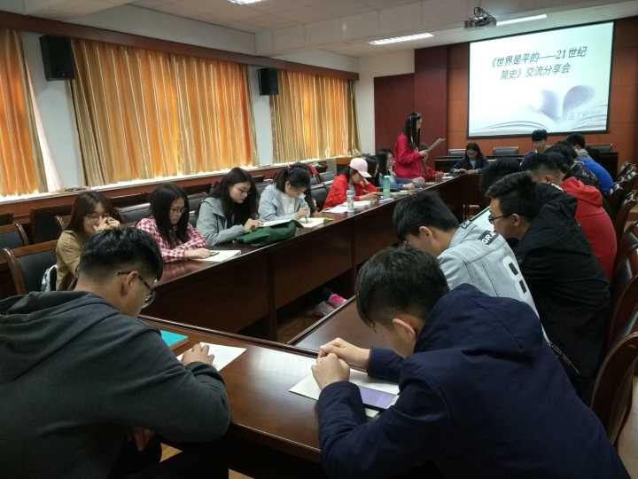 《世界是平的:21世纪简史》是当前全球畅销的有关经济全球化的书,语言通俗易懂,其主要论题是“世界正被抹平”,这是一段个人与公司透过全球化过程得到权力的过程,让人在阅读的乐趣中了解经济全球化。活动中,同学们通过分组讨论、交流分享的方式表达对这本书的心得感悟,准备充分,语言精彩。