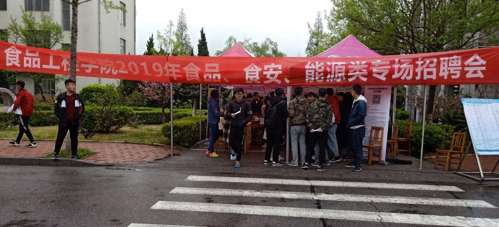 4月25日,食品工程学院在我校北区6号、7号教学楼南侧广场举办2019届毕业生食品、食安、能源类专场招聘会。