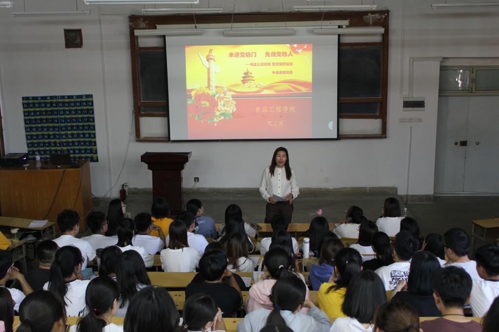 程书记以“未进党的门,先做党的人”为主题展开授课,她从中国共产党的产生、党的性质和如何履行党员义务等方面,联系大学生的学习、生活、思想实际,对学员们的思维方式、价值取向、行为选择进行了正确的引导。她指出:作为一名积极要求入党的大学生,不仅要坚定理想信念,树立正确的入党动机,还要发挥党员模范带头作用,用党员标准来要求自己,努力学习科学文化知识,全面提高自身素质。她还结合实际情况,提出要树立良好学风,加强品德修养的要求。最后,程书记对本期党员发展对象和入党积极分子提出殷切希望:从思想上重视,做到勤奋刻苦、遵规守纪、踏实积极,认真践行为人民服务的价值追求。
