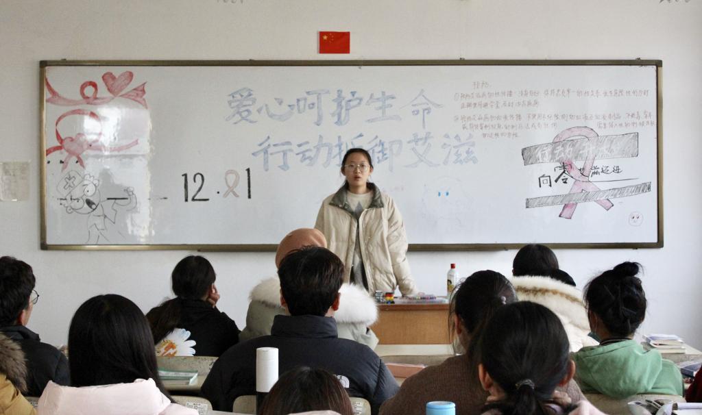 12月17日下午,英国上市公司365在北区七号教学楼开展以“爱心呵护生命,行动抵御艾滋”为主题的团日活动,2019级全体学生参加本次活动。