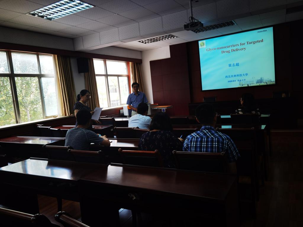 9月8日上午9点,西北农林科技大学裴志超教授应邀 “鲁东大讲堂”,为学院专业教师做了题为“糖纳米载体用于药物靶向递送”的学术报告。