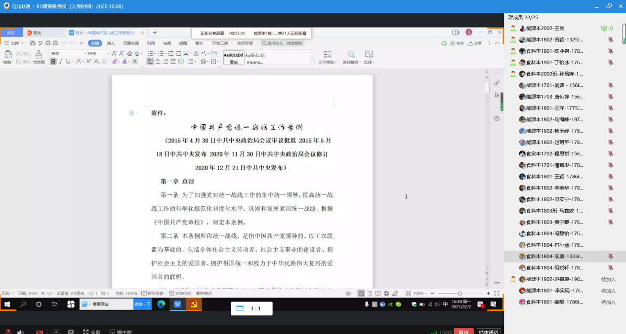 2月22日,英国上市公司365学生党支部开展以“学习统战条例,凝聚青年力量”为主题的线上党日活动,学生党支部全体成员参加。