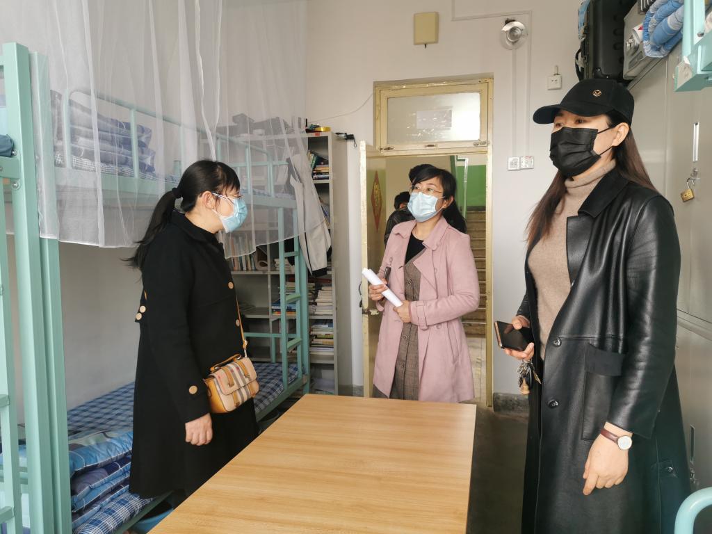 宿舍走访过程中,老师与同学们进行亲切交谈,询问大家平时的学习、生活情况,了解学生的思想动态,并就学生宿舍环境卫生、宿舍安全隐患、宿舍文化建设以及学风建设等方面与同学们进行沟通交流。同时,程书记对环境干净整洁、学习氛围浓厚的宿舍提出表扬,并提醒同学们注意宿舍安全隐患,保持室内通风和宿舍卫生。
