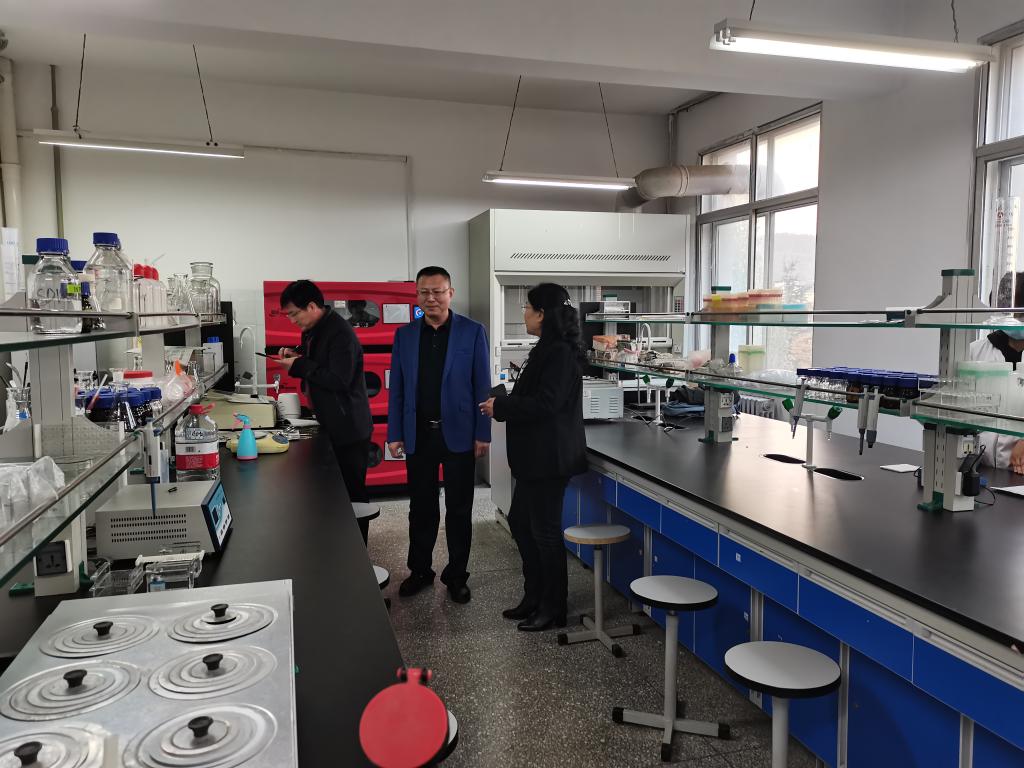 在全面安全检查的基础上,吴校长一行仔细查看了实验室及仪器设备使用记录、危险化学品使用登记表等材料,重点检查了易燃易爆危险化学品的使用管理、气体钢瓶存放与使用安全规范、消防安全等,对于检查过程中发现的安全隐患提出了整改意见,并与学院负责人就实验室安全工作的重要性、安全隐患排查整改等问题进行了深入的沟通与交流。