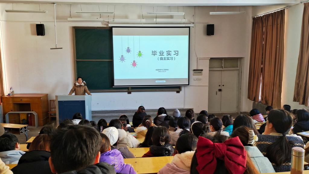 赵芹老师在动员大会上指出毕业实习是学生对所学知识进行检验,并积累初步工作经验重要学习环节,希望同学们能够以积极认真的态度参加实习。赵芹老师就实习过程中的注意事项和实习要求进一步解释说明。最后,赵芹老师对毕业生们提出希望和要求,希望各位毕业生以饱满的热情投入到实习当中,在实习期间牢记使命、虚心学习,为学院增光。