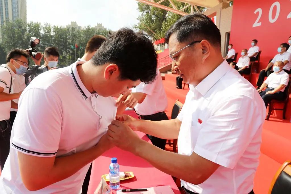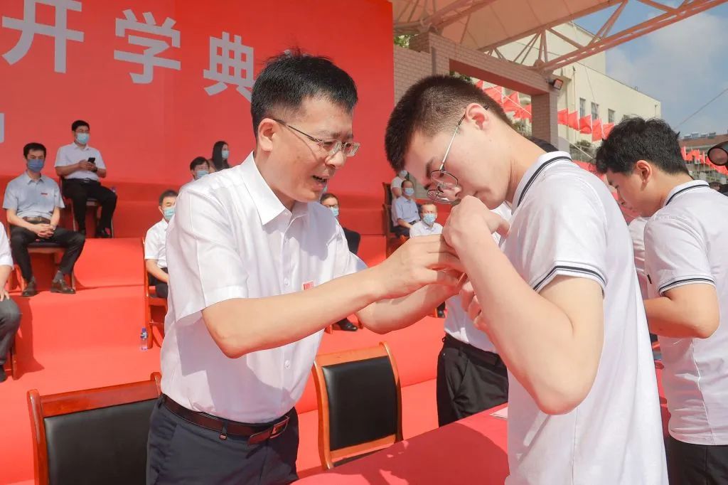 校长李合亮为2022级新生佩戴校徽