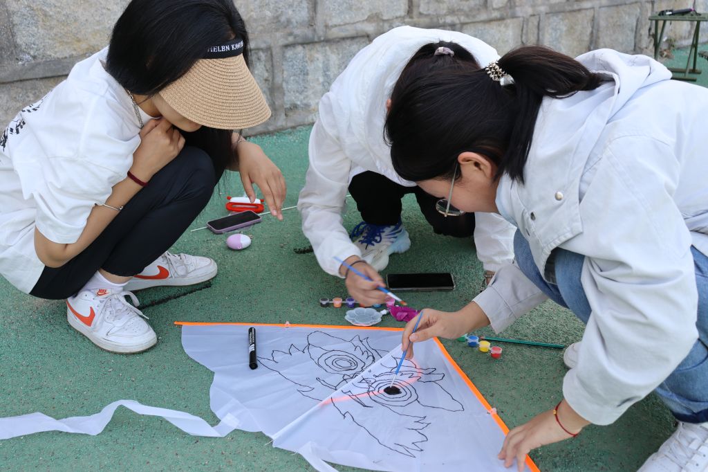 本次活动共分为两个环节。第一环节为DIY手绘风筝,随着主持人一声令下,各队伍成员手持各种手工加工材料,在发挥个人丰富想象力的基础上,通过团队配合的方式合力制作出最美纸鸢。第二环节为放飞纸鸢,同学们迎风奔跑,一枚枚借风而起的纸鸢飞扬在空中,形成了一道道靓丽的风景线。放飞结束后,评委根据DIY用时多少、作品美观程度以及作品创意对全场纸鸢进行评比。