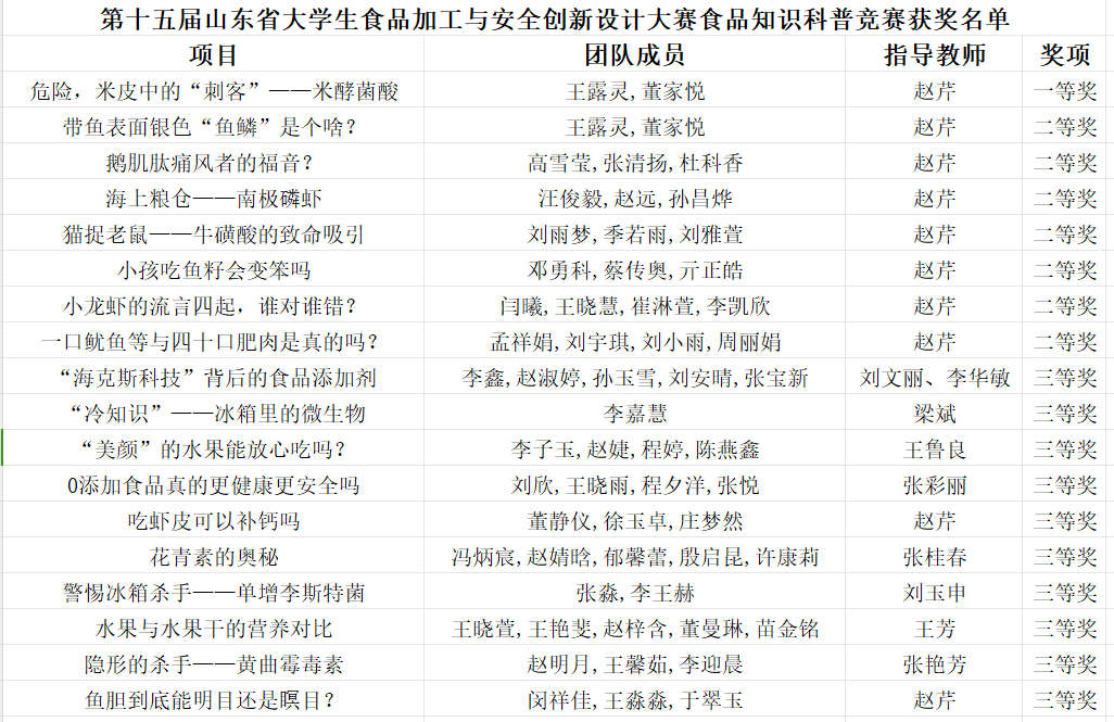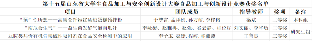 我院在第十五届山东省大学生食品加工与安全创新设计大赛中喜获佳绩