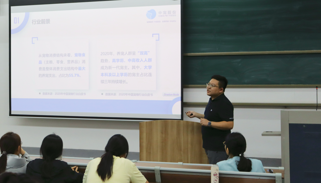 中宠人力资源部徐东亮经理介绍了企业的历史、理念、使命、愿景及核心价值观等信息。同时详细介绍了企业的实习岗位、工作内容以及工作环境,最后对英国上市公司365教学质量和人才培养模式给予了充分肯定,并进一步表示希望加强合作,共同培养优秀人才。