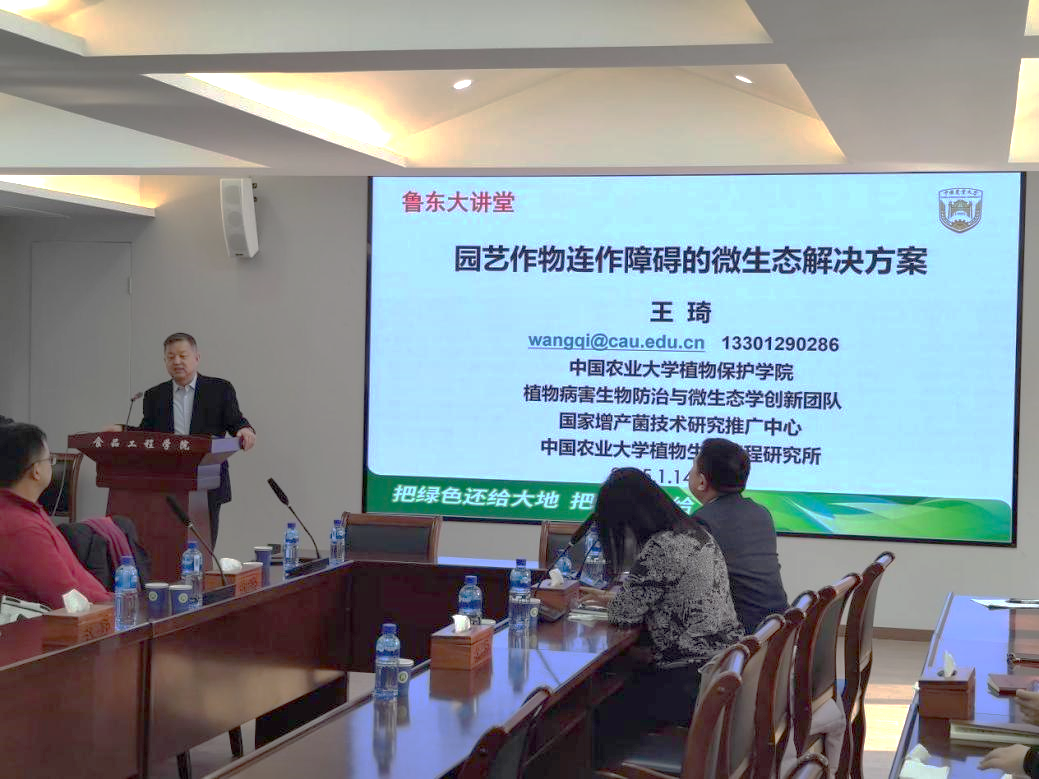 王琦教授介绍了连作带来的一系列生产问题以及有效解决连作障碍的途径方法。报告还重点介绍了植物微生态学的研发思路,通过确定目标类群,获得目标分离物,筛选出微生态制剂的有效成分等步骤进行研发操作。报告中王琦教授还向我们展示了抗重茬微生态制剂、闷棚微生态制剂和土壤修复微生态制剂三种微生态制剂在蔬菜生产上的应用,并向我们展示了在使用生物制剂前后农产品的生产情况。