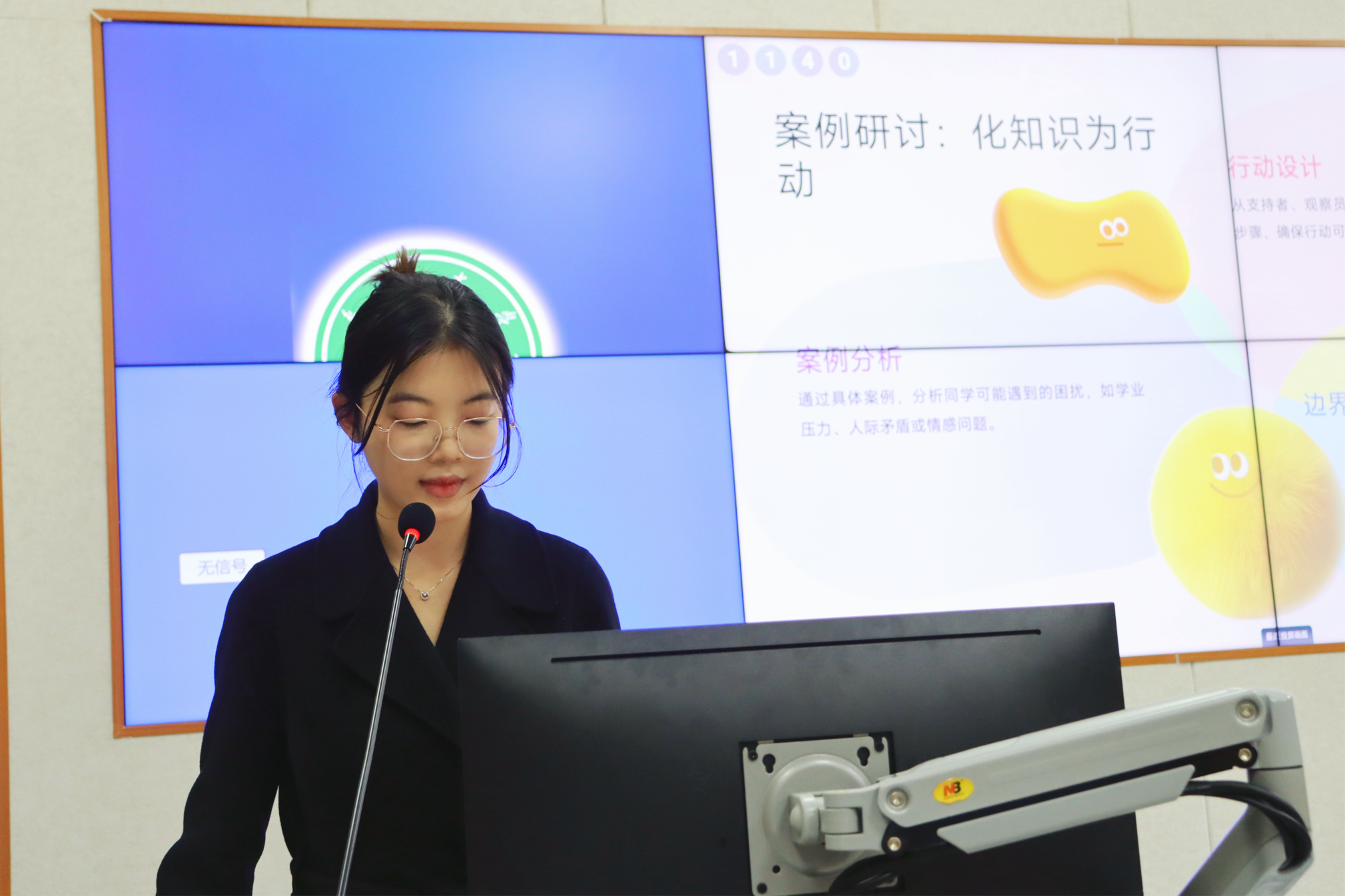 培训后期转为“实战研讨会”,各小组围绕“学生压力/人际矛盾”真实案例展开研讨。学员结合所学知识,从原因剖析到干预方案设计,完成心理骨干的实战技能落地。