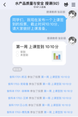 利用QQ群屏幕分享的授课方式探索中,对于学生签到方式进行了多次比较,发现QQ虽自带打卡功能,但是在实际使用中,不同的客户端该功能存在的位置不同,而且还需要QQ更新到一定的版本,经过比较分析,觉得利用QQ自带的投票功能进行投票签到非常简便快捷,而且可以设置多次,同学们也比较熟悉这一功能。