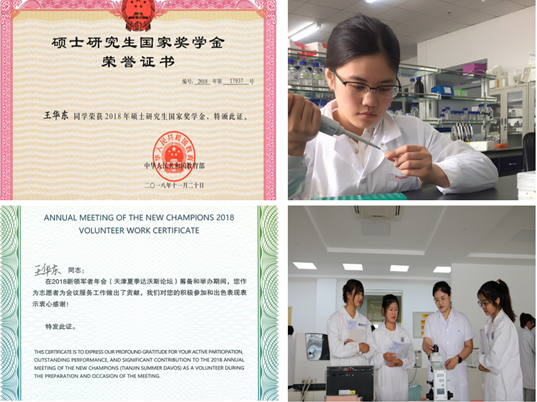 如果用一个词来形容王华东的大学生活,她的选择是“磨砺”。在大学期间,她努力学习专业知识,坚持不懈、奋发向上,积极参加各种校园活动以及党团组织的各项活动,综合素质名列前茅,连续每年的奖学金对她来说不仅是一种肯定,更是一种激励,要不断提高自己,成为更优秀的人。为了进一步提高自己的实验操作能力,在大二时就主动联系专业课教师——贡汉生老师,利用课余时间进入实验室学习,协助老师做实验。