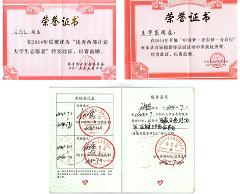 为我校2014年省级优秀毕业生,在校期间连续每年荣获校级奖学金、优秀学生以及校优秀学生干部称号。在西藏志愿服务期间,荣获“优秀西部计划大学生志愿者”称号。硕士期间荣获国家奖学金、优秀研究生、达沃斯论坛优秀志愿者等称号。